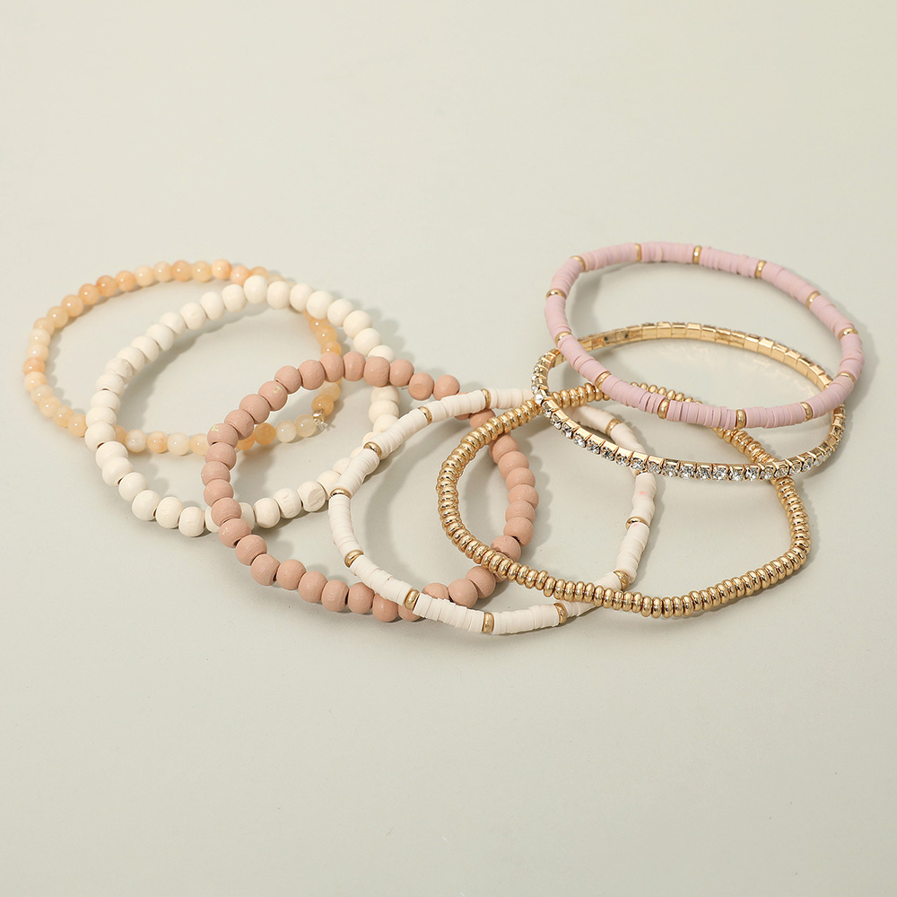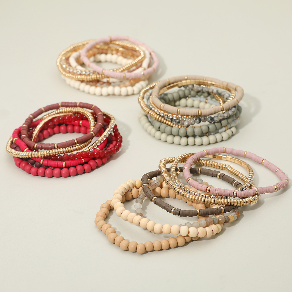 • This multi-strand stretch bracelet set combines a mix of smooth beads, metallic accents, and shimmering details for a stylish layered look. Easy to slip on, it offers comfort and versatility, making it perfect for stacking or wearing alone as a bold statement accessory.