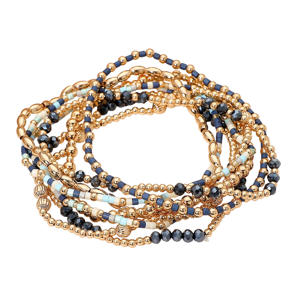 Details • Size : 1" H • Stretchable • Multi-Beaded Stretch Bracelet showcases layered textures and a flexible fit for effortless style. Designed to stack or wear solo, it adds dynamic detail to everyday looks or dressy outfits while offering comfortable, slip-on wear for all-day confidence. • Lead and Nickel Compliant