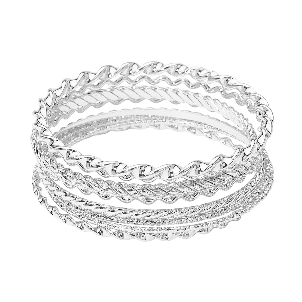 8PCS - Textured Metal Stackable Multi Layered Bangle Bracelets