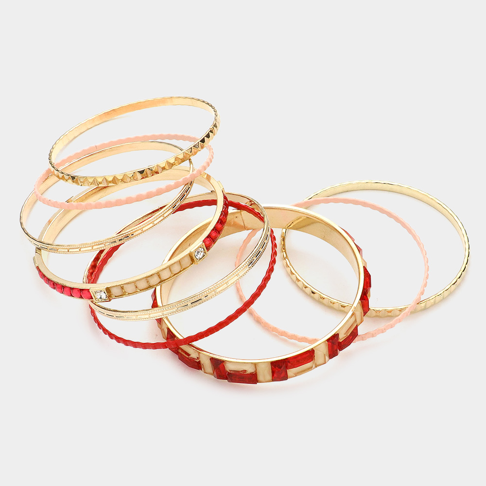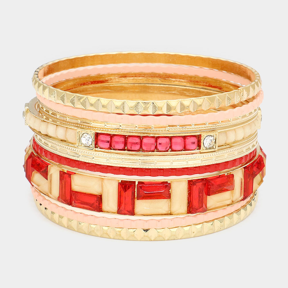 9PCS - Crystal Enamel Geometric Multi Layered Bracelets