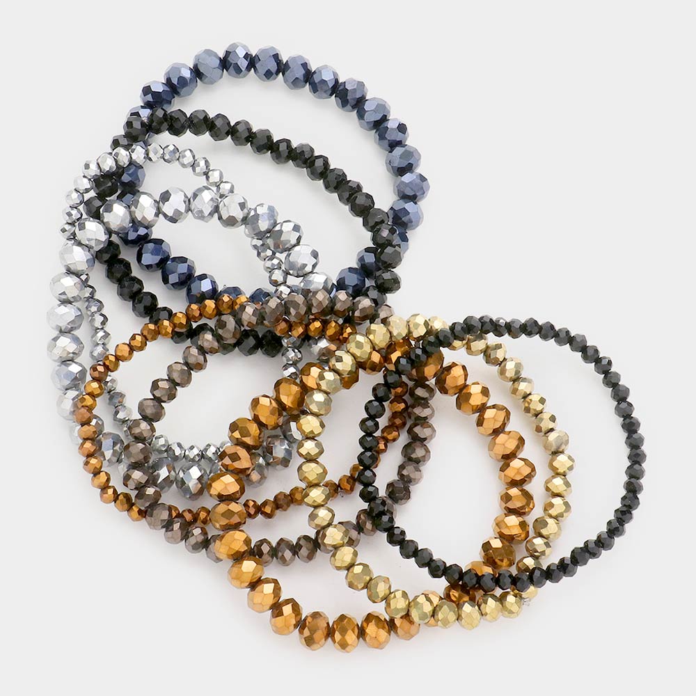 9PCS - Faceted Bead Stretch Bracelets