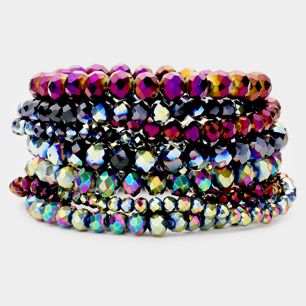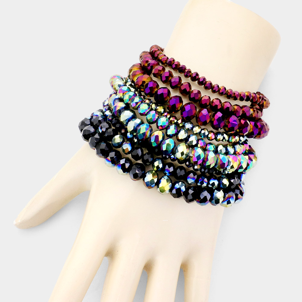 9PCS - Faceted Bead Stretch Bracelets