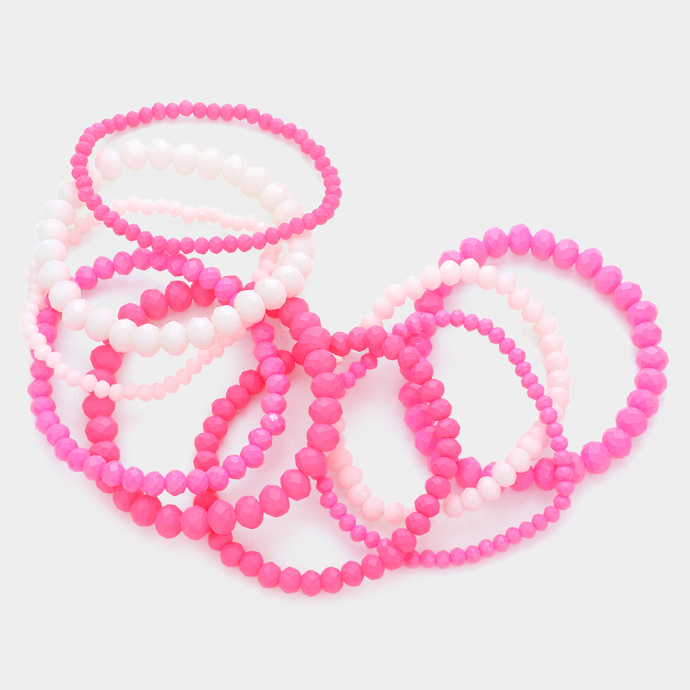 4PCS - Enamel Pink Ribbon Afro Woman High Heel Wing Heart Charm Faceted Beaded Stretch Multi Layered Bracelets