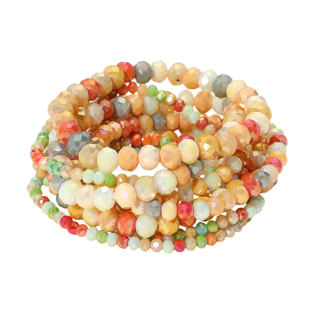 3PCS - Semi Precious Stone & Glass Bead Stack Stretch Multi Layered Bracelets