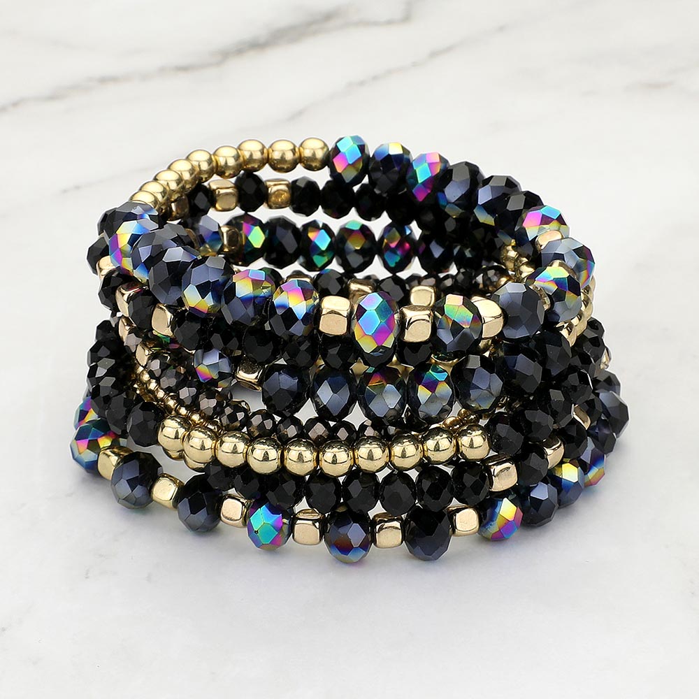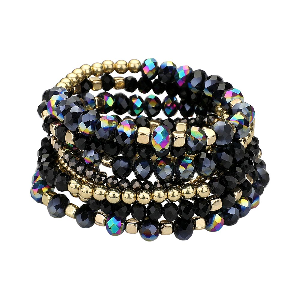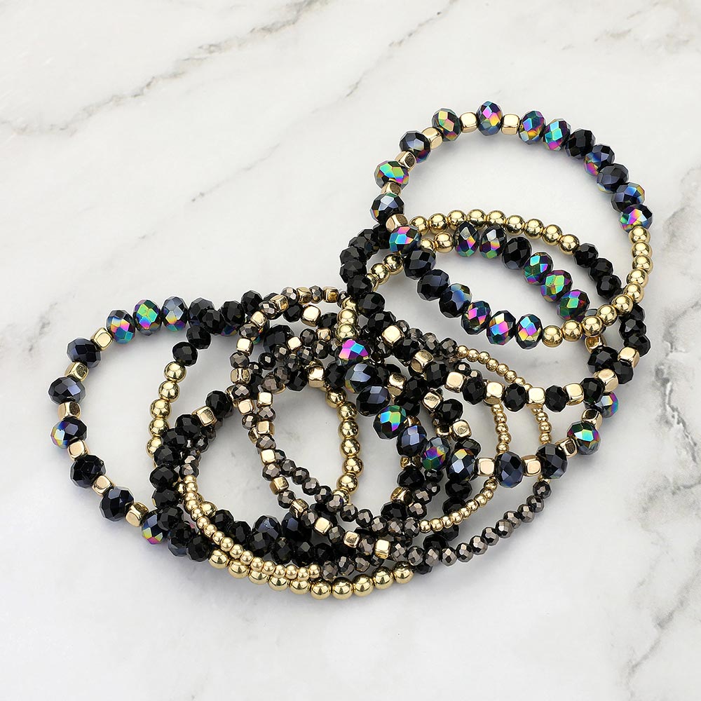 9PCs - Faceted Beaded Stretch Multi Layered Bracelets