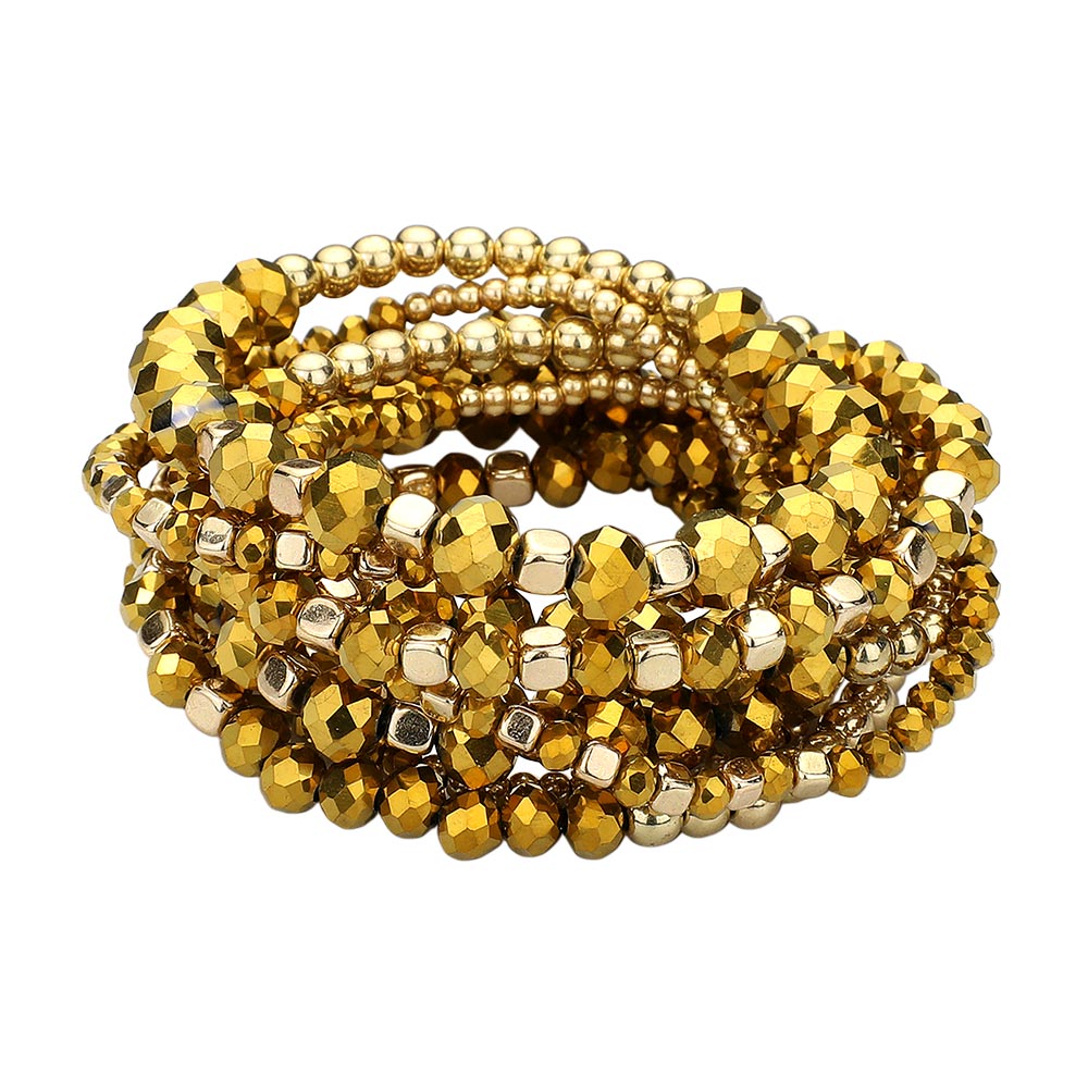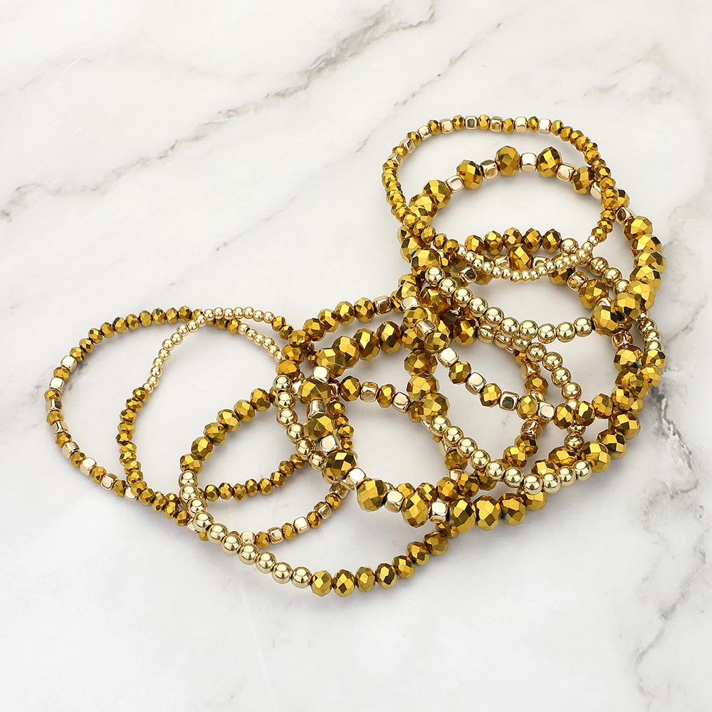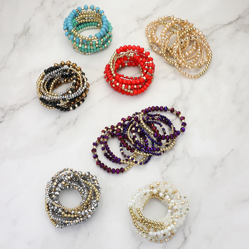 9PCs - Faceted Beaded Stretch Multi Layered Bracelets