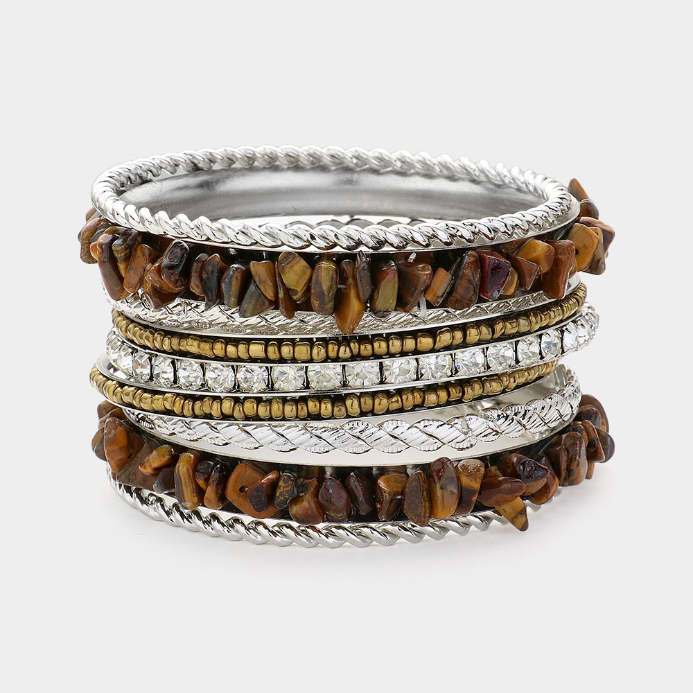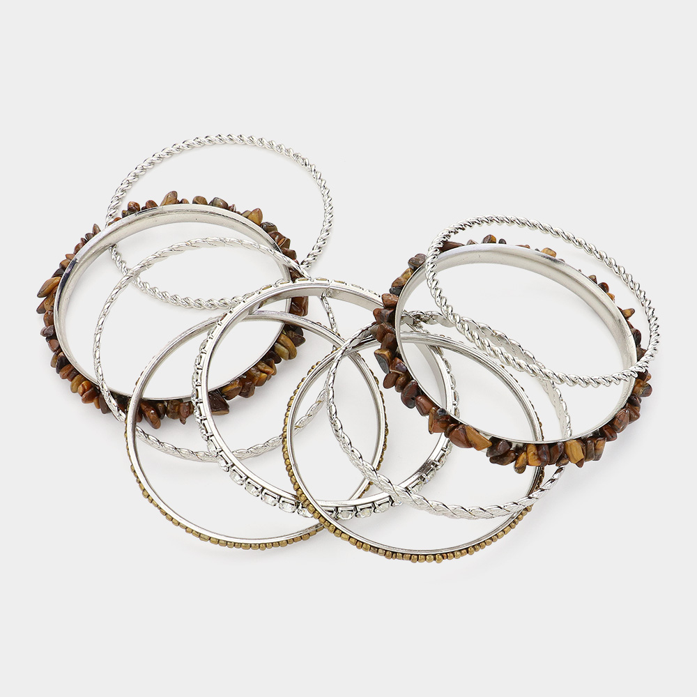 9PCS - Seafoam Pebble Beaded Metal Stack Bracelet