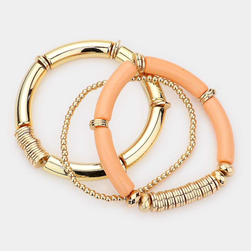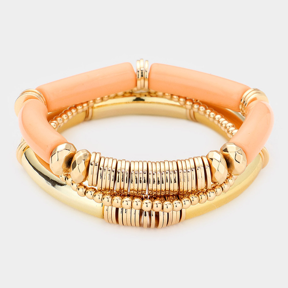 Resin Heishi Beaded Stretch Multi Layered Bracelets