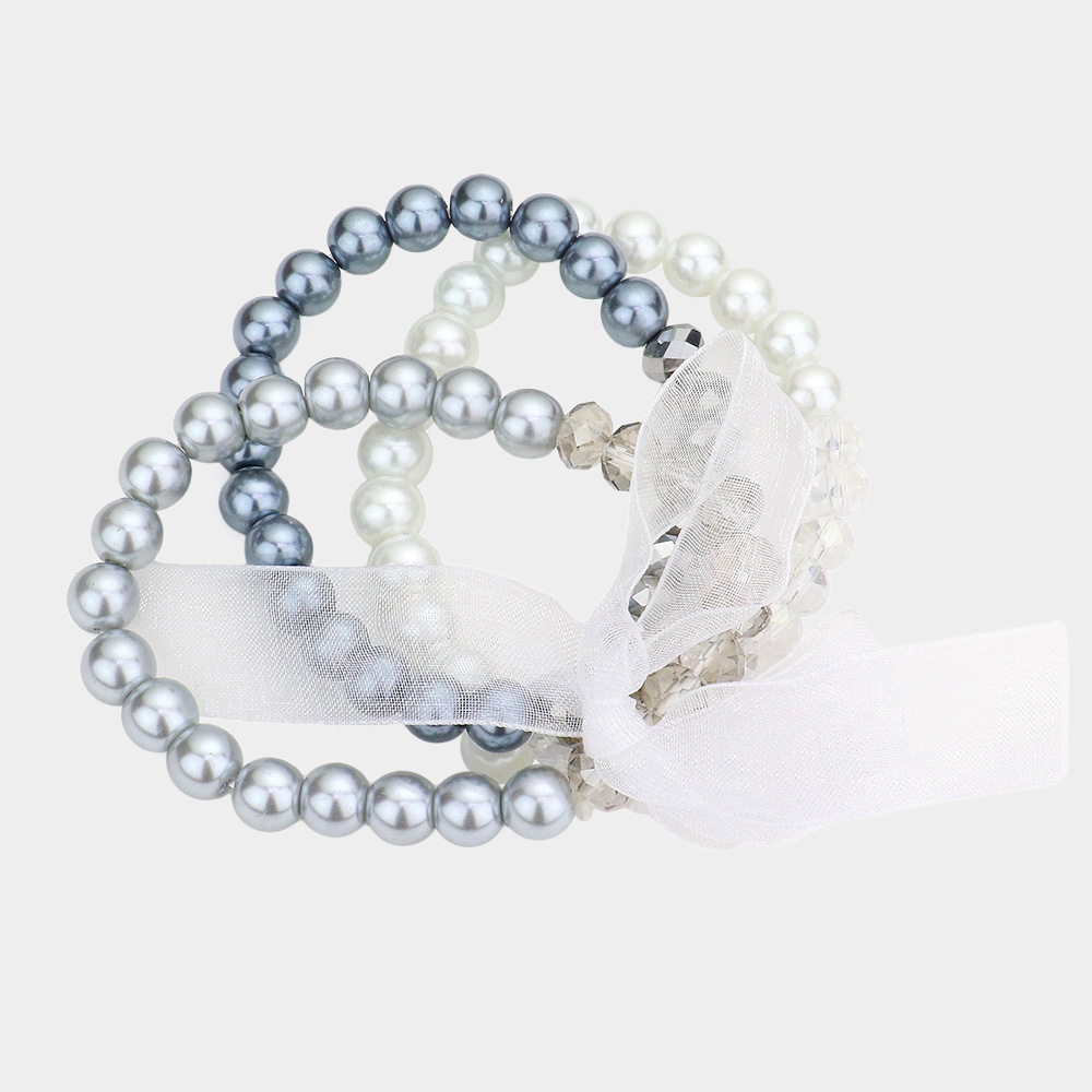 3PCS - Glass Bead Accented Pearl Stretch Bracelet