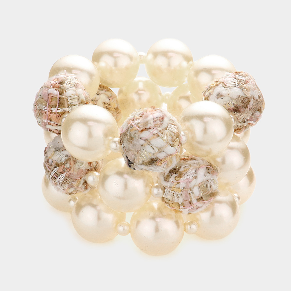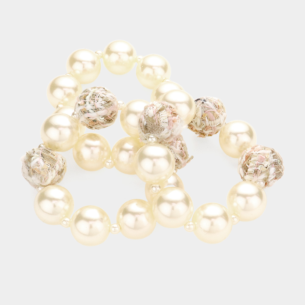 3PCS - Tweed Fabric Ball Pearl Stretch Bracelets
