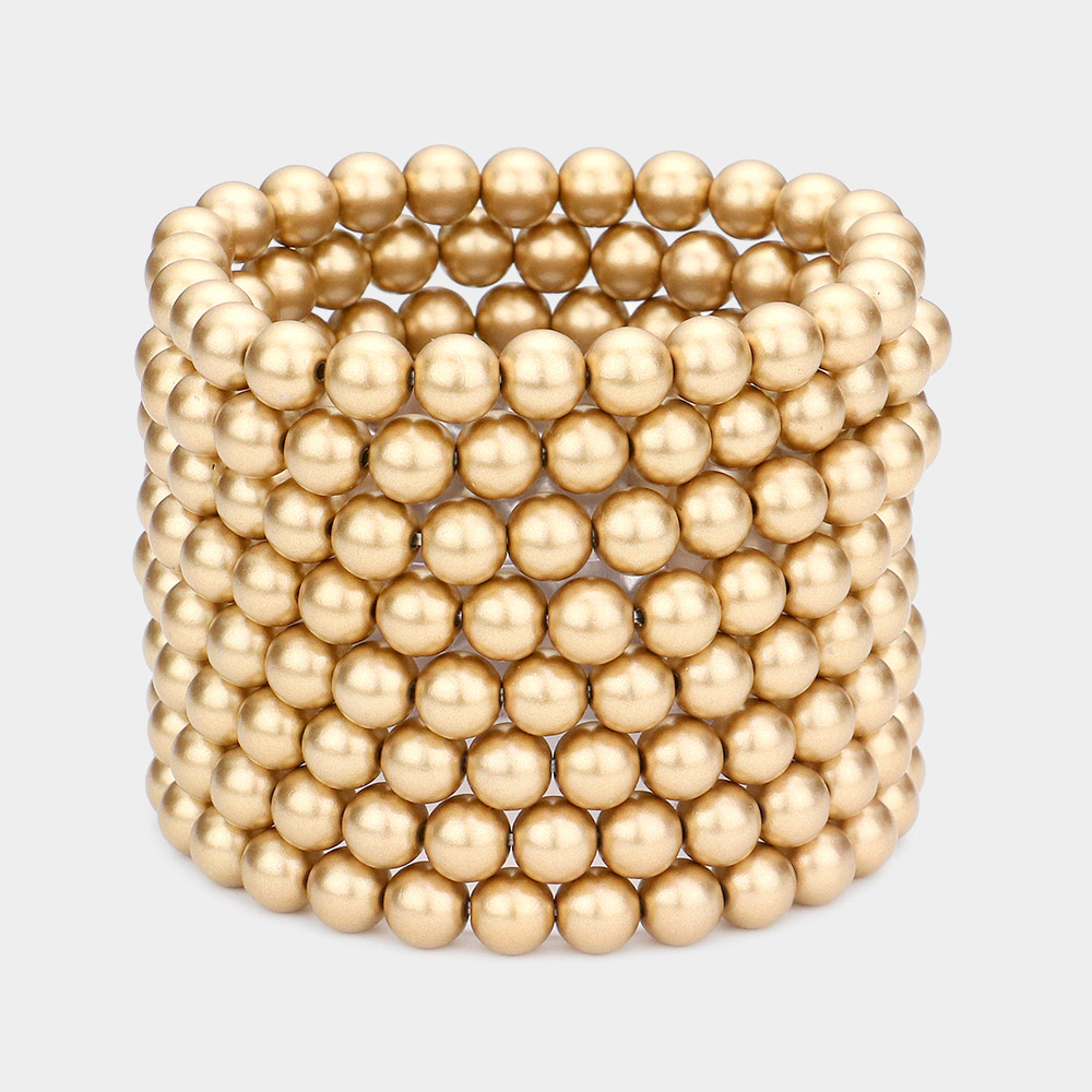 4PCS - Semi Precious Pearl Wood Beaded Stretch Bracelets