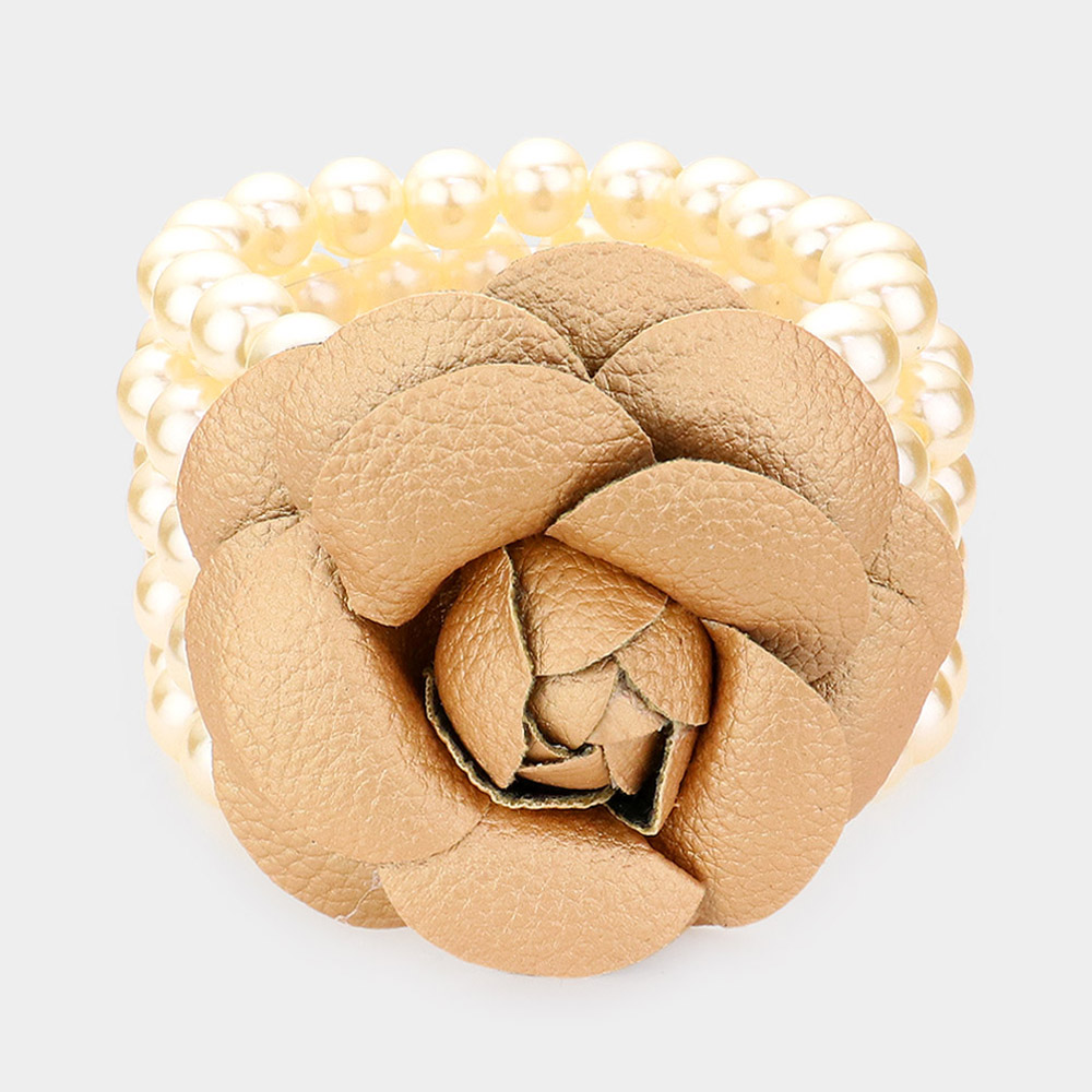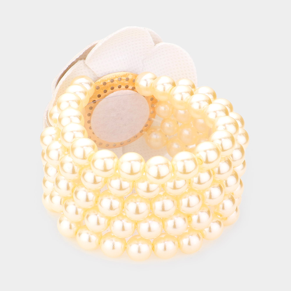 Details • Size : 2.75" H • Stretchable • Stylish stretch bracelet featuring multiple strands of pearls and a bold flower centerpiece for a chic statement. Perfect for weddings, parties, or elegant occasions, this bracelet blends classic pearl elegance with modern floral detailing, creating a standout accessory for refined looks.