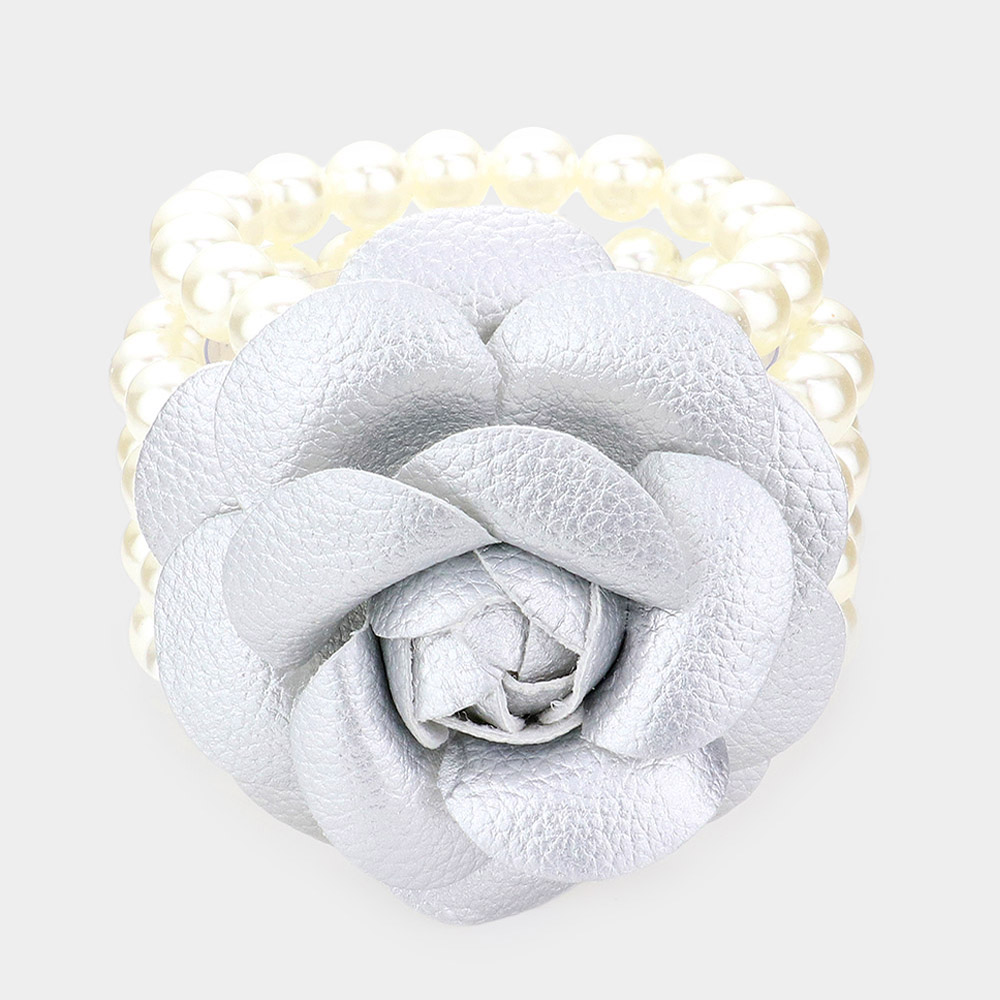 Details • Size : 2.75" H • Stretchable • Stylish stretch bracelet featuring multiple strands of pearls and a bold flower centerpiece for a chic statement. Perfect for weddings, parties, or elegant occasions, this bracelet blends classic pearl elegance with modern floral detailing, creating a standout accessory for refined looks.
