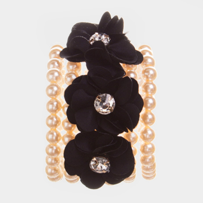 Detachable Flower Pin Brooch Pearl Stretch Bracelet