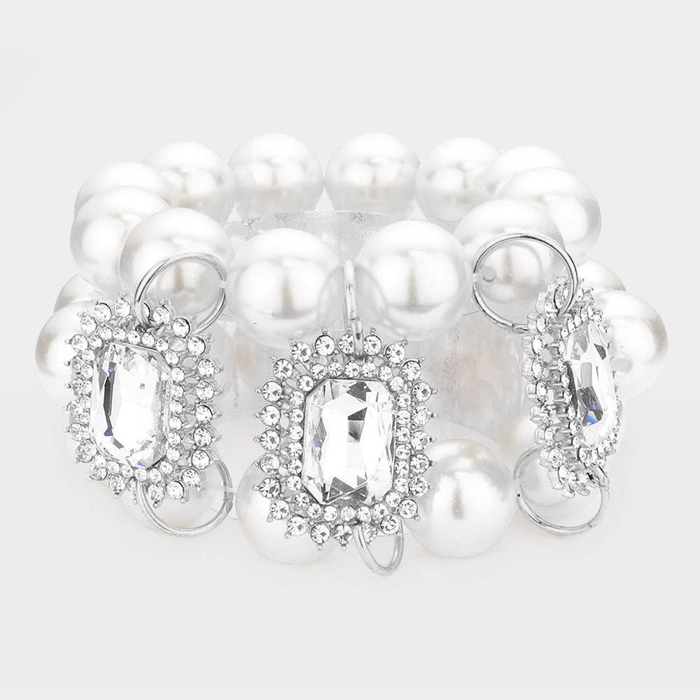 Glass Stone Accented Pearl Stretch Bracelet Glass Stone Accented Pearl Stretch Bracelet Glass Stone Accented Pearl Stretch Bracelet