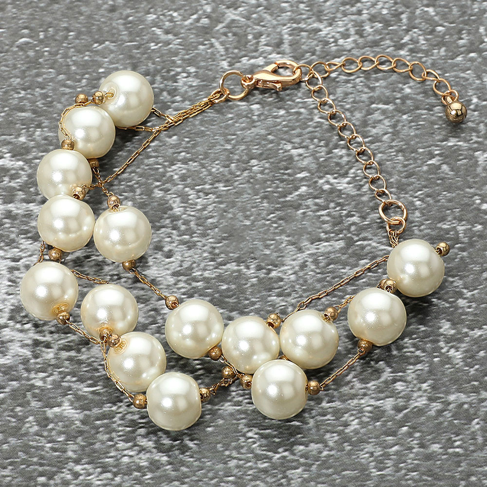 Metal Stiletto Heel Charm Station Pearl Cluster Toggle Bracelet