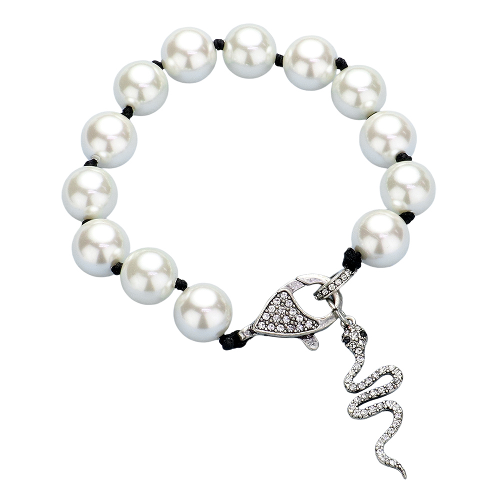 Rectangle Stone Accented Pearl Stretch Bracelet