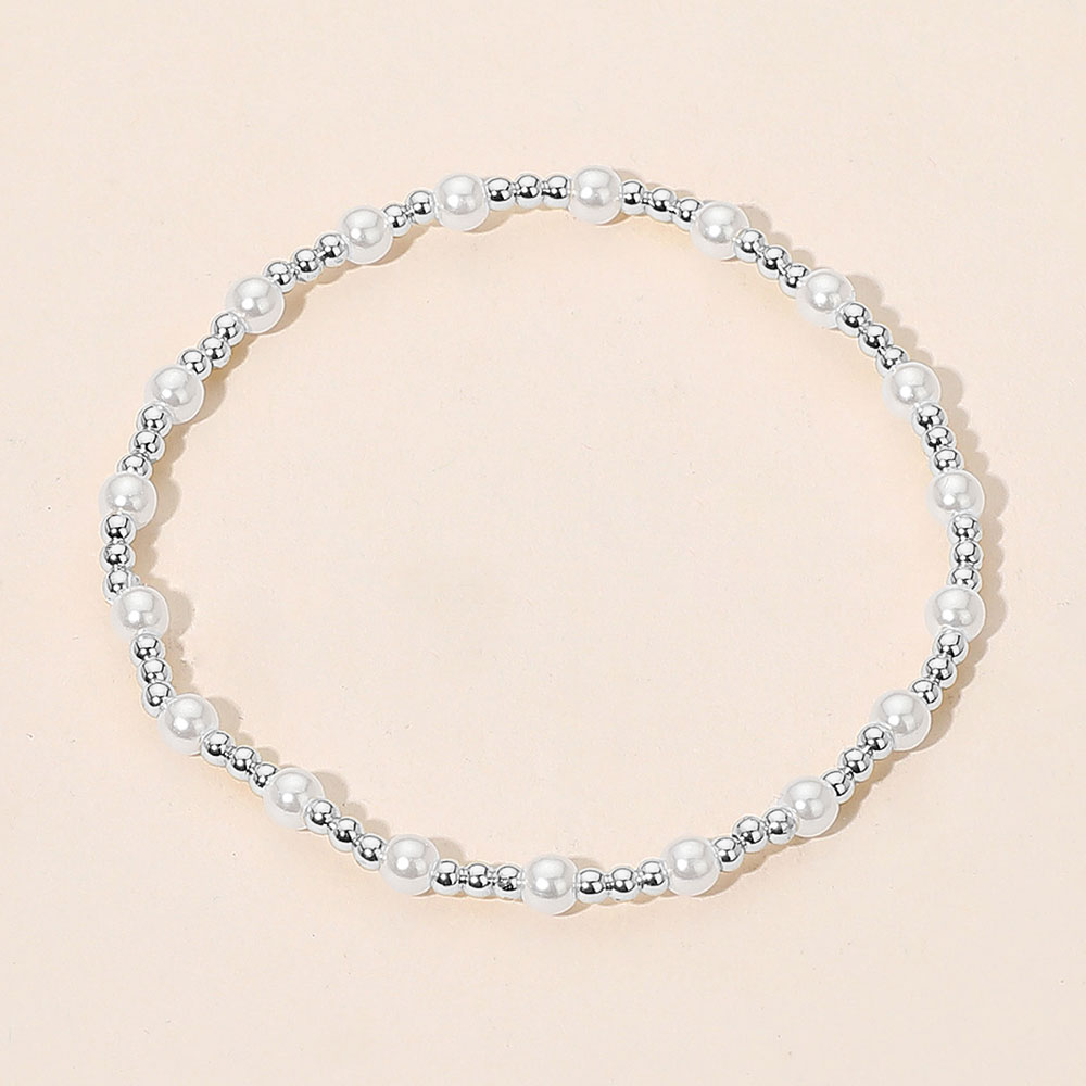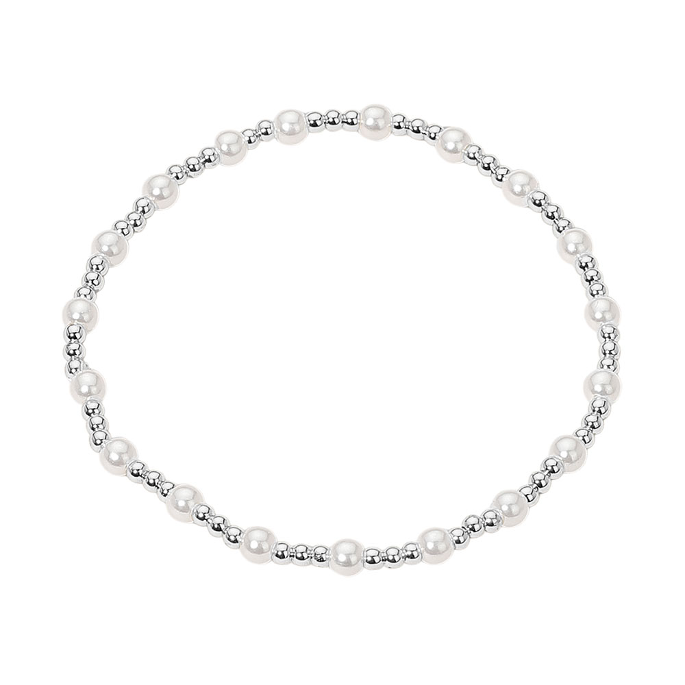Details • Size : 0.2" H • Stretchable • Timeless stretch bracelet designed with alternating polished beads and pearl accents. Lightweight and versatile, perfect for layering or wearing solo to add a touch of refined elegance to everyday or formal looks. • Stainless Steel