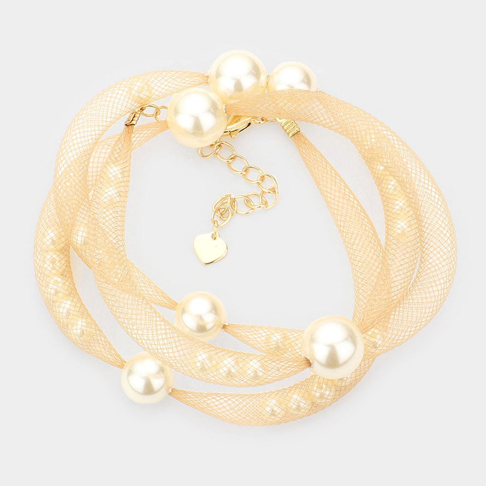 Pearl Accented Mesh Wrap Bracelet