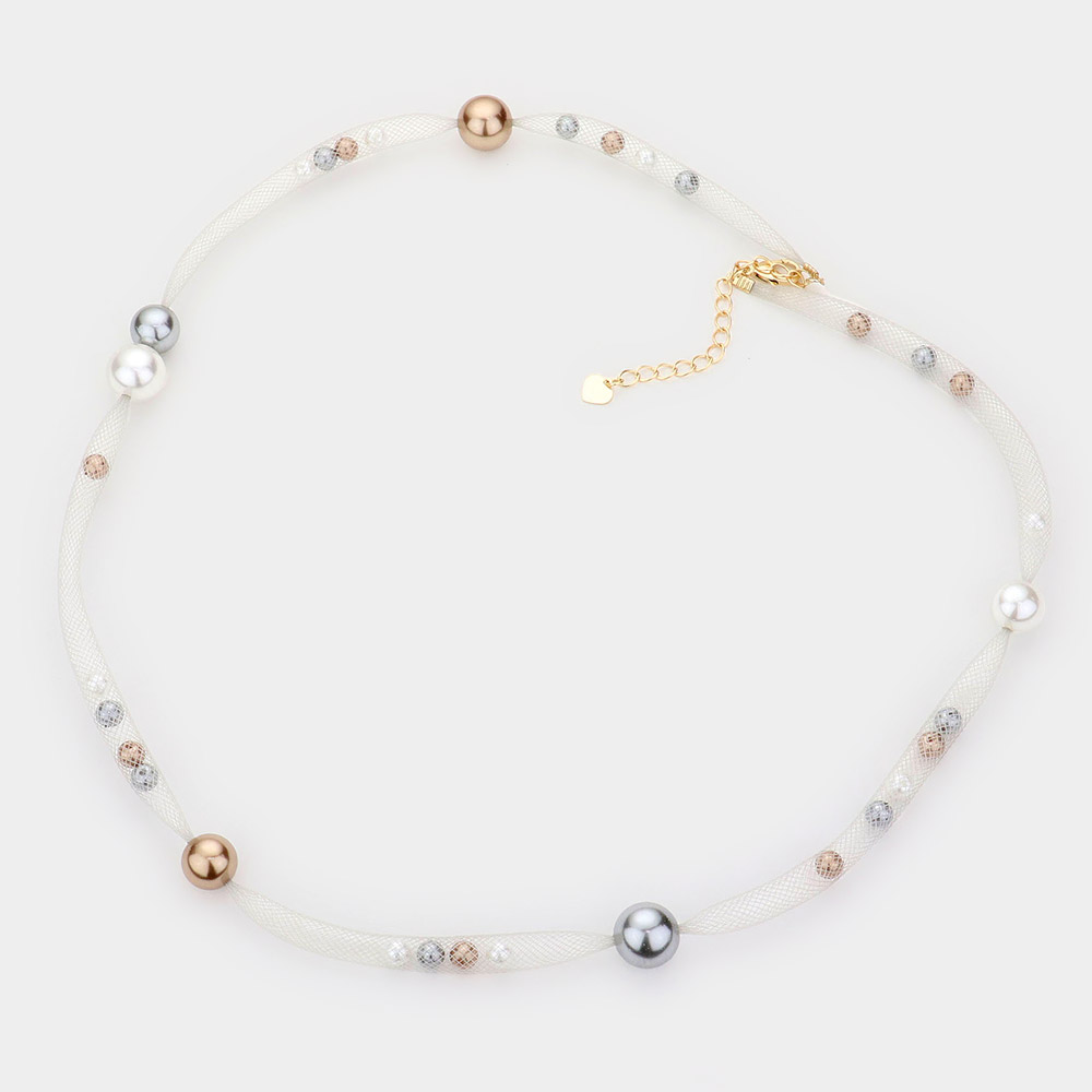 Pearl Accented Triple Layered Mesh Bib Necklace