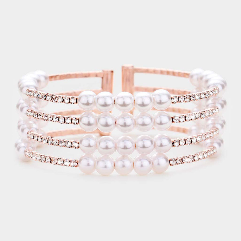Pearl Crystal Rhinestone Statement Cuff Evening Bracelet