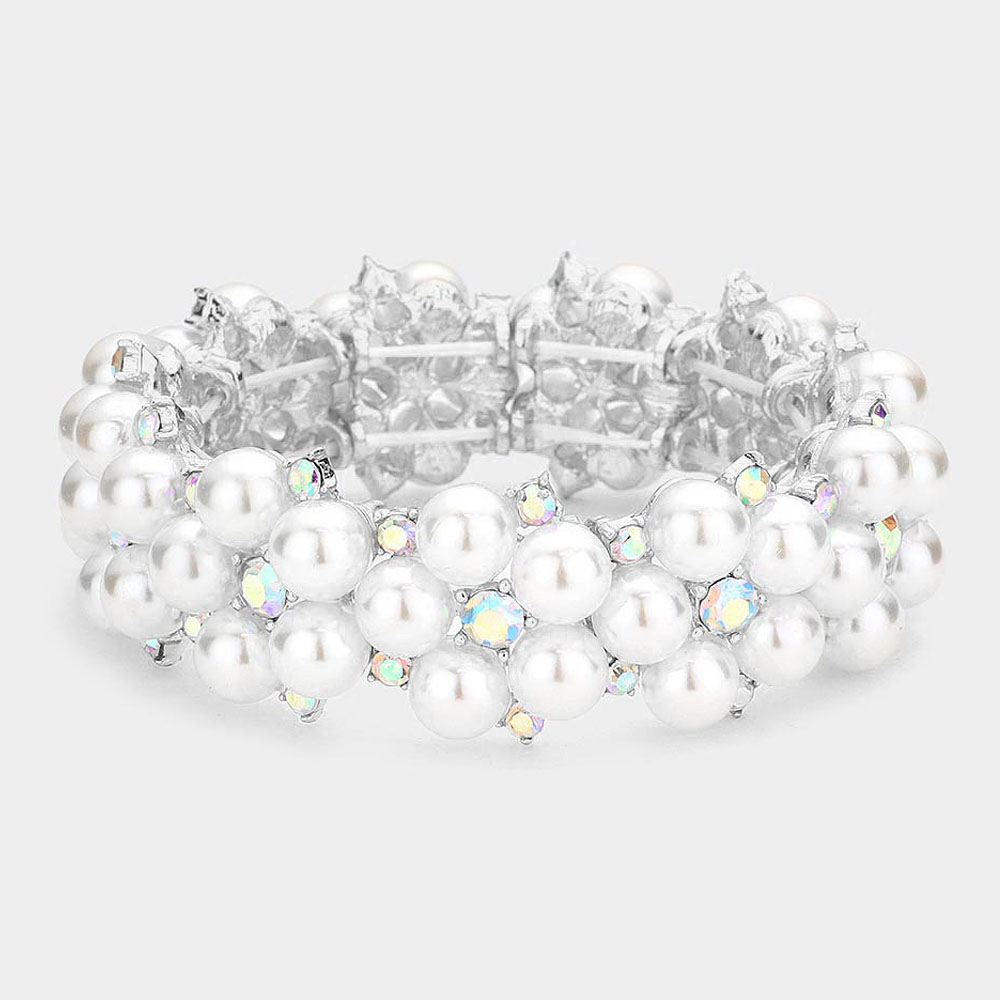 Round Stone Centered Rhinestone Flower Stretch Ring