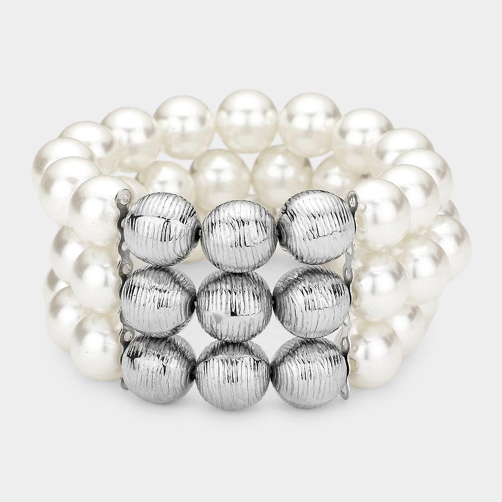 Pearl Accented Triple Layered Mesh Bib Necklace