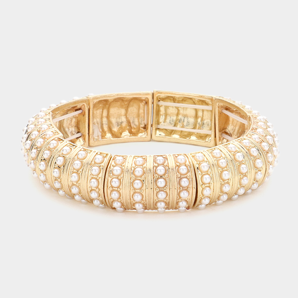Elegant Round Pearl Beaded Stretch Statement Bracelet