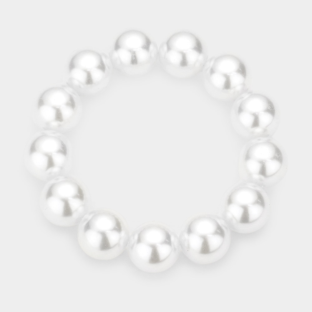 Pearl Stainless Steel Ball Beaded Stretch Bracelet