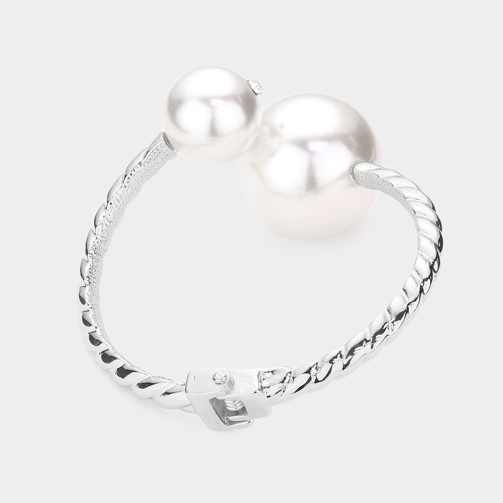 Chunky Pearl Textured Metal Collar Choker Necklace