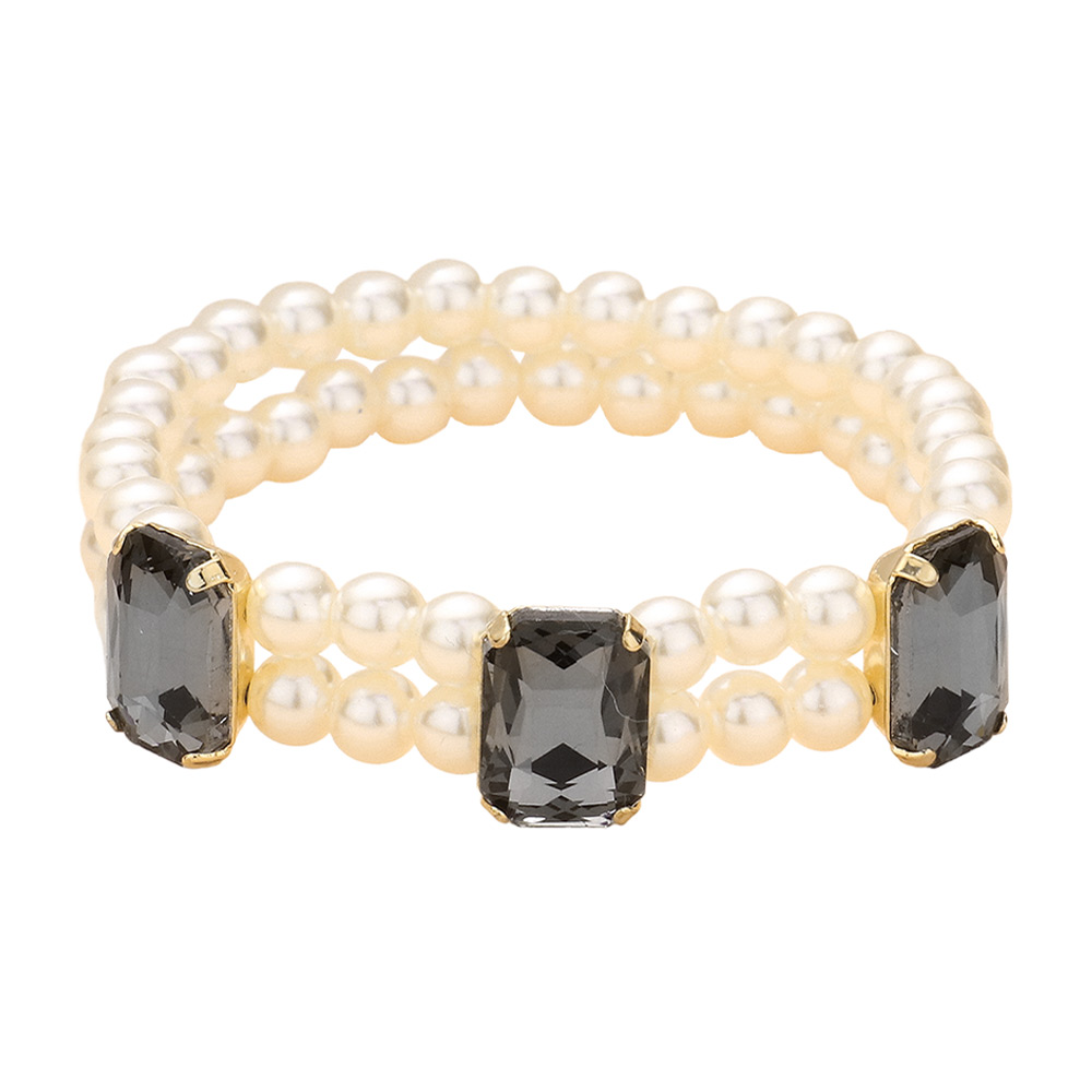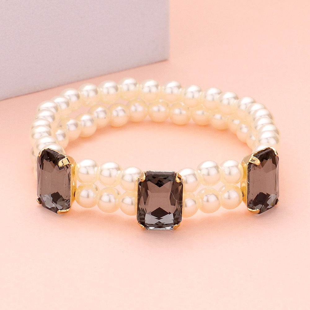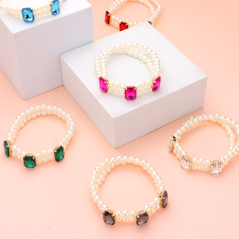 Rectangle Stone Accented Pearl Stretch Bracelet