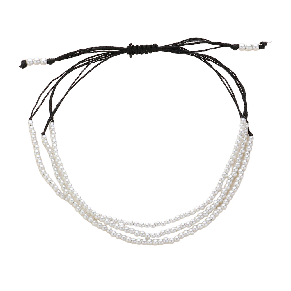 Seed Pearl Beaded Triple Layered Cinch Pull Tie Bracelet