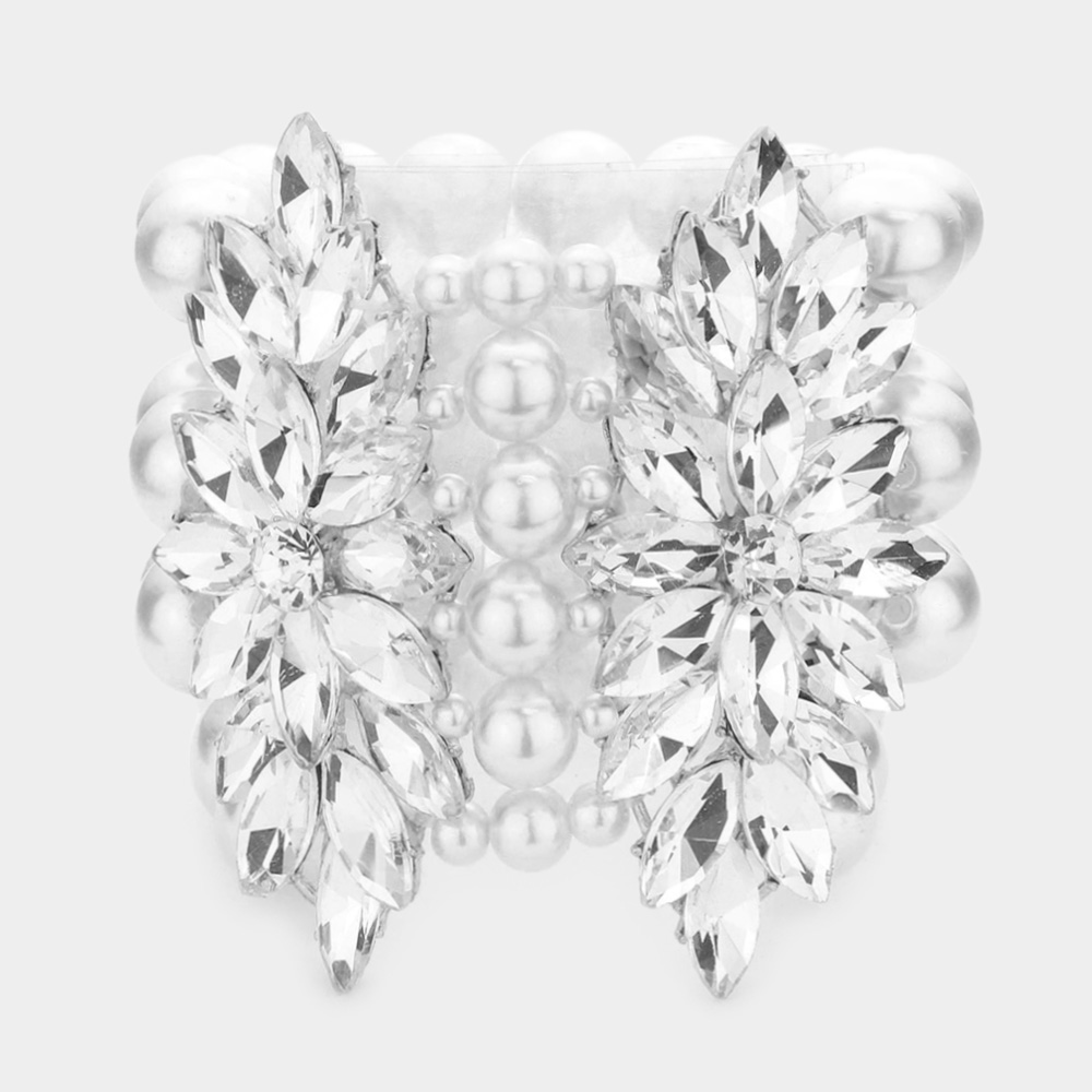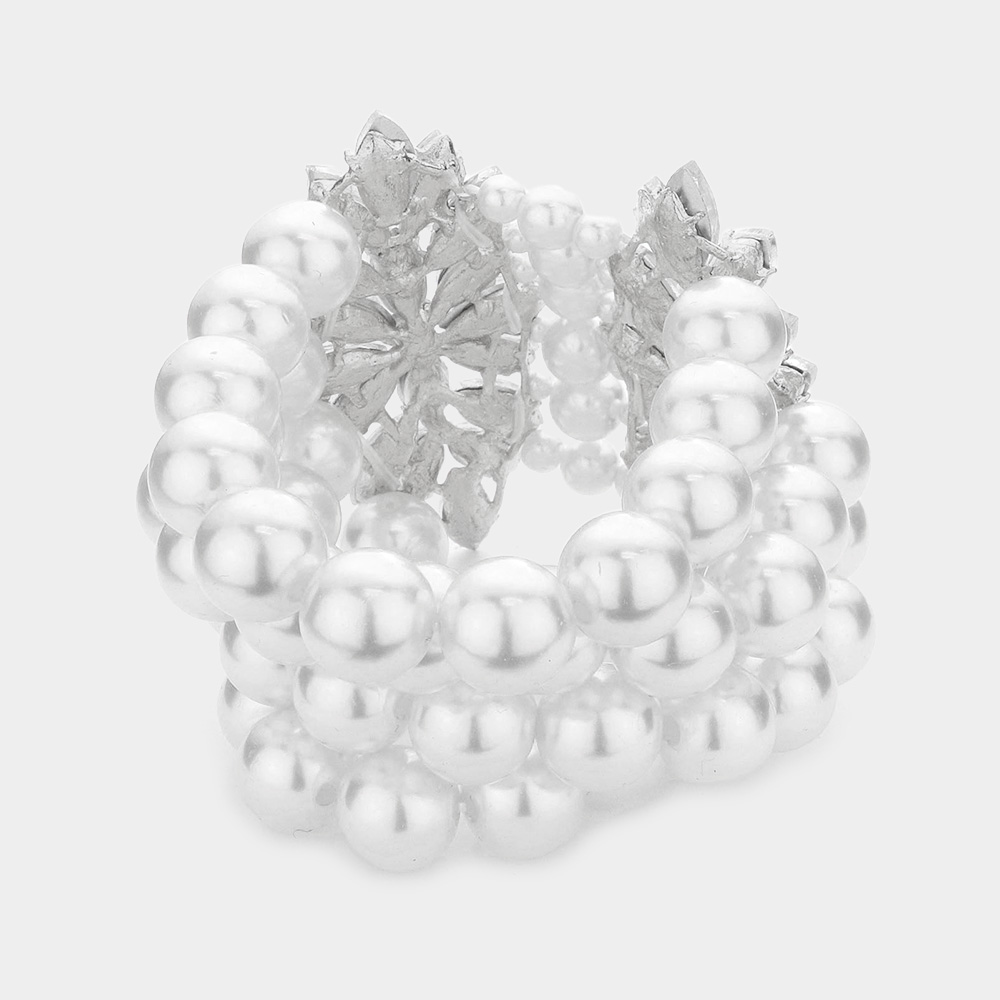 Stone Embellished Multi Layered Pearl Stretch Bracelet
