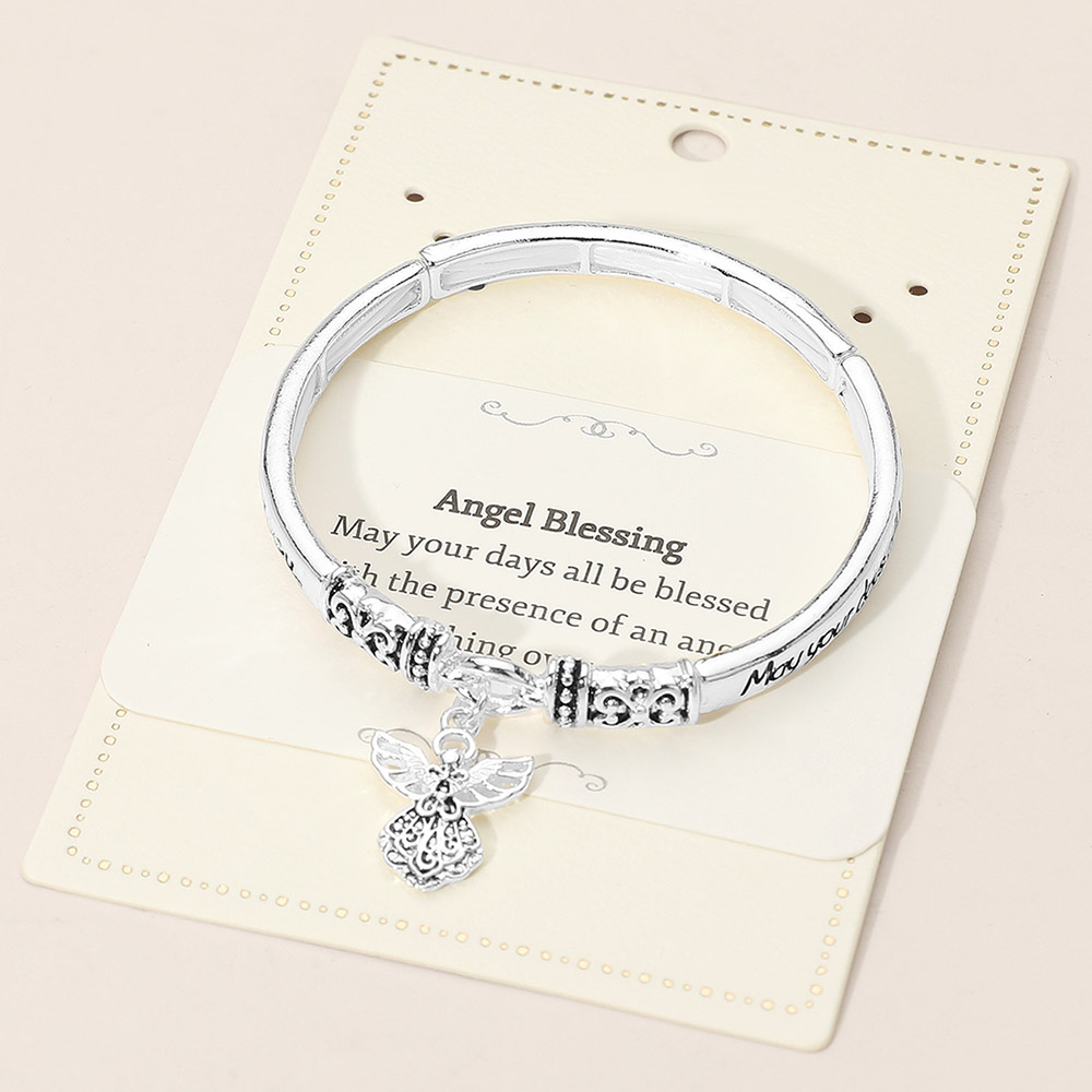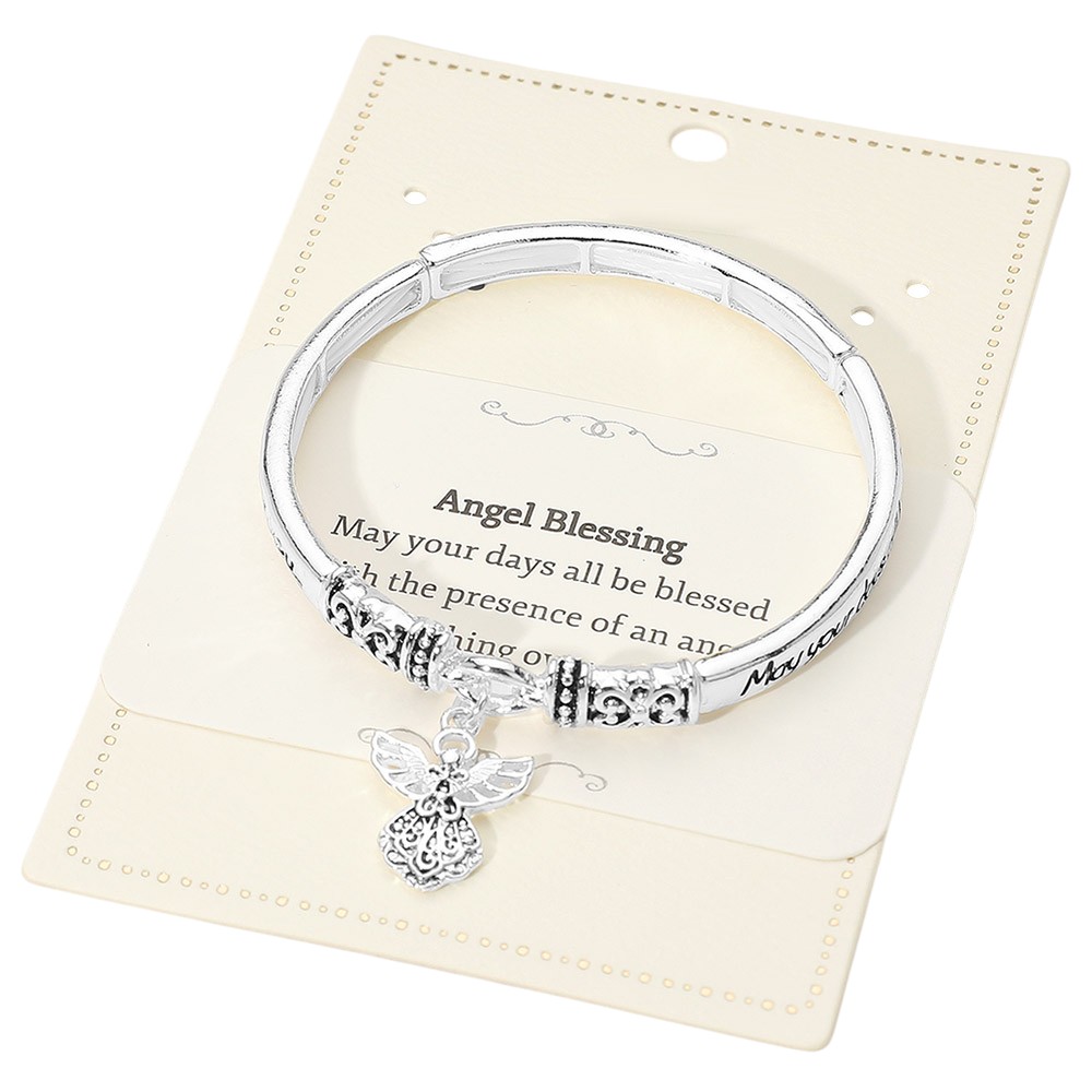 Angel Blessing Inspirational Religious Message Angel Charm Stretch Bangle Bracelet