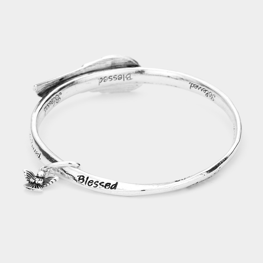 Blessed Message Metal Wing Accented Angel Charm Bangle Bracelet