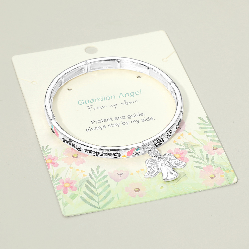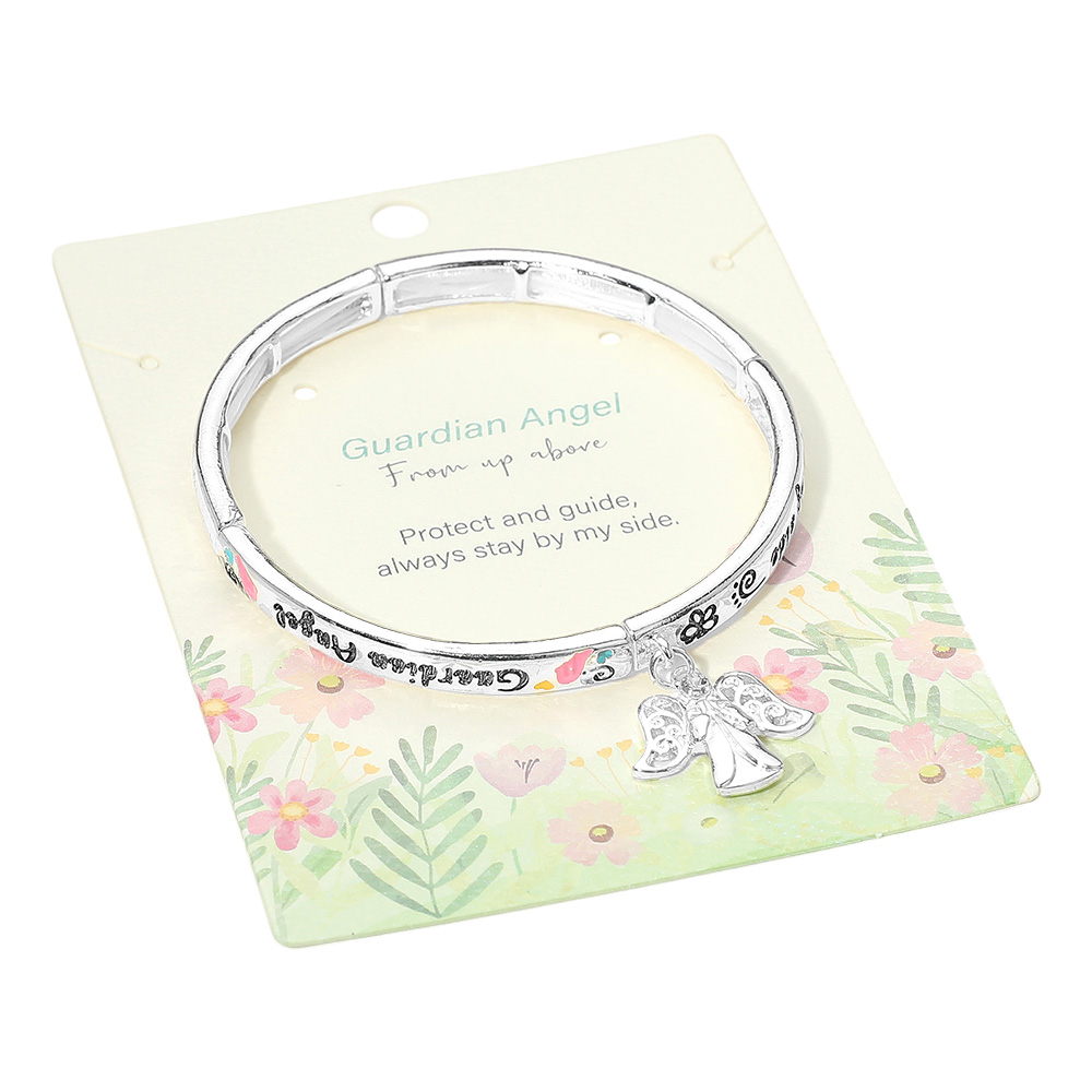Details • Size : 0.25" H • Charm Size : 0.8" L • Stretchable • Keep protection and faith close with this Guardian Angel bracelet featuring engraved words of comfort and a delicate angel charm. A meaningful accessory symbolizing guidance and love, it makes a thoughtful gift for encouragement, remembrance, or special spiritual occasions. • Lead and Nickel Compliant