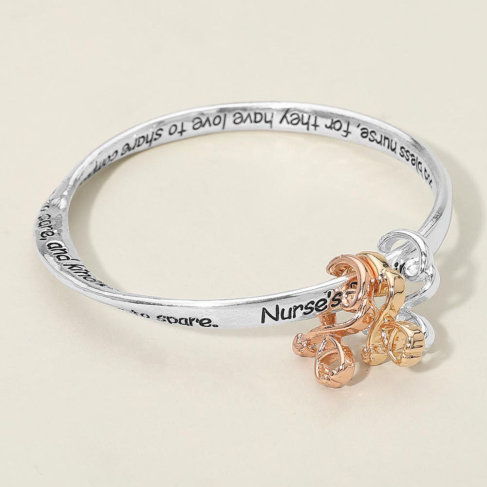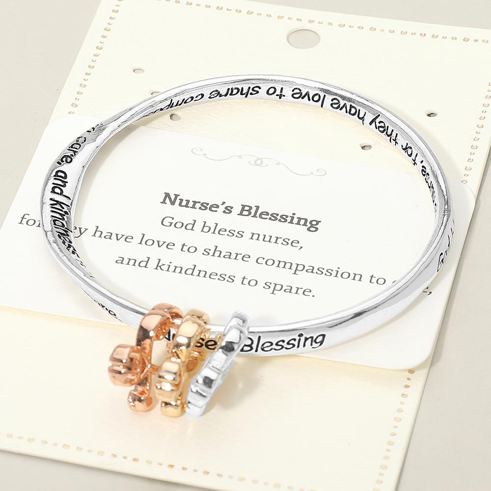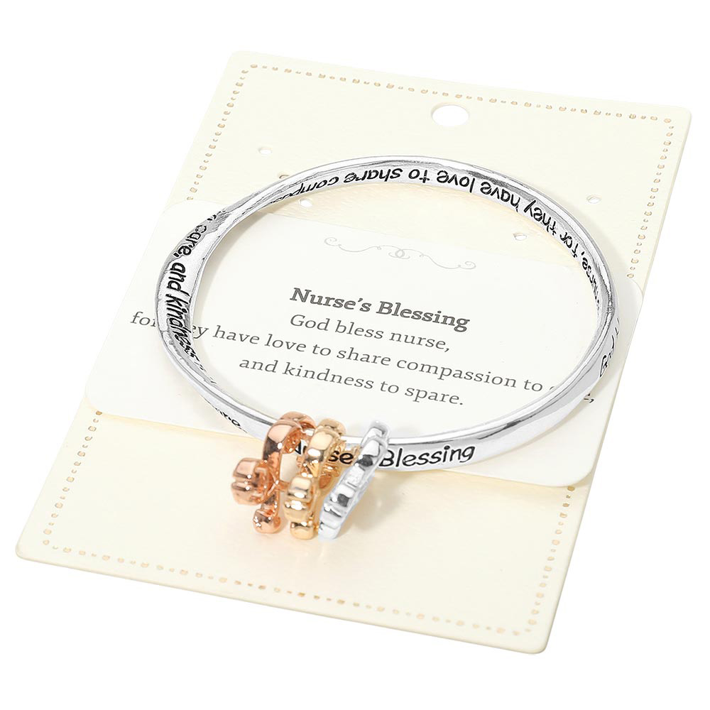 Details • Size : 0.75" H, 2.5" D • Celebrate care and compassion with this Nurse’s Blessing engraved inspirational bangle bracelet featuring a heartfelt message and charming accents. A thoughtful gift for nurses, graduates, or everyday encouragement, perfect for honoring dedication and kindness in a meaningful, wearable way. • Lead and Nickel Compliant