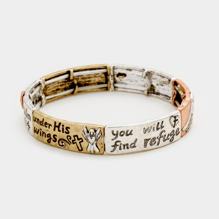 Psalm 91 : 4 Hammered Metal Stretch Bracelet