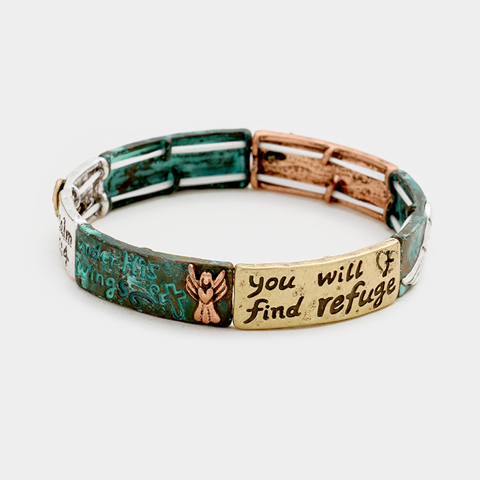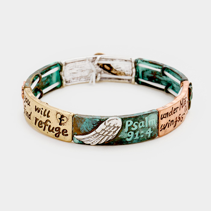 Psalm 91 : 4 Hammered Metal Stretch Bracelet