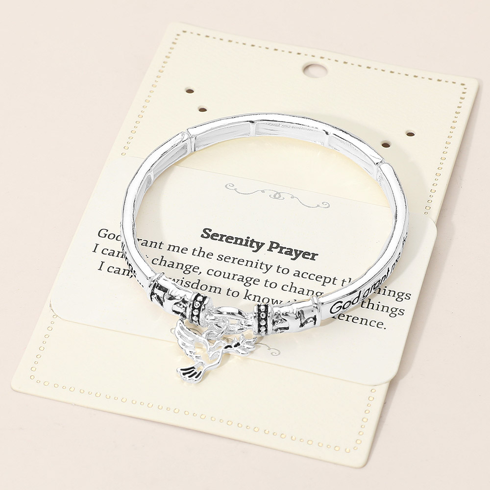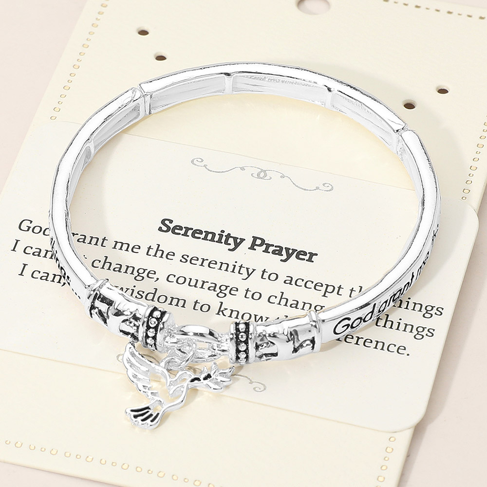 Serenity Prayer Inspirational Religious Message Dove Charm Stretch Bangle Bracelet