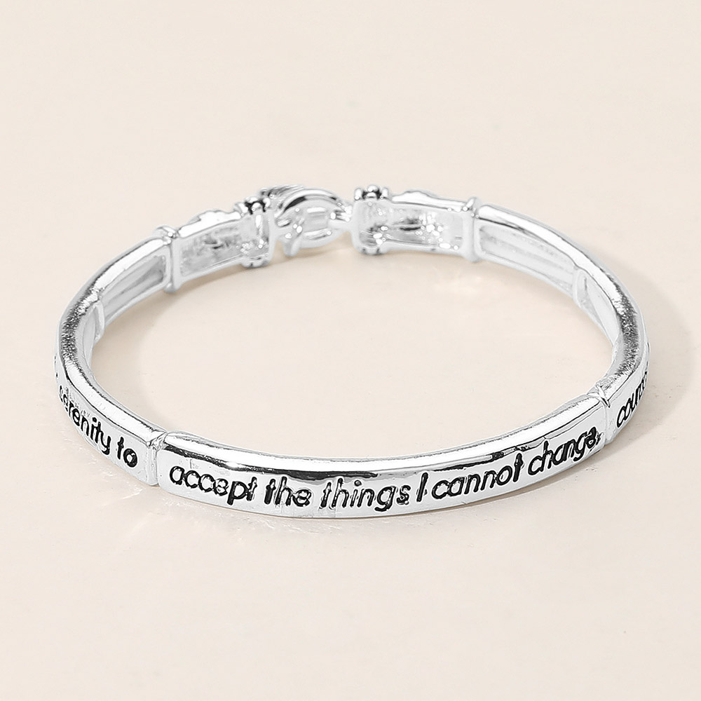 Antique Pattern Silver Metal Message Stretch Bracelet