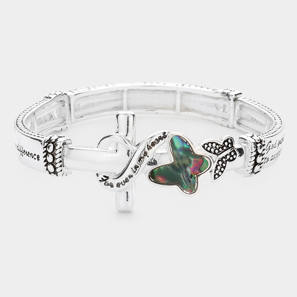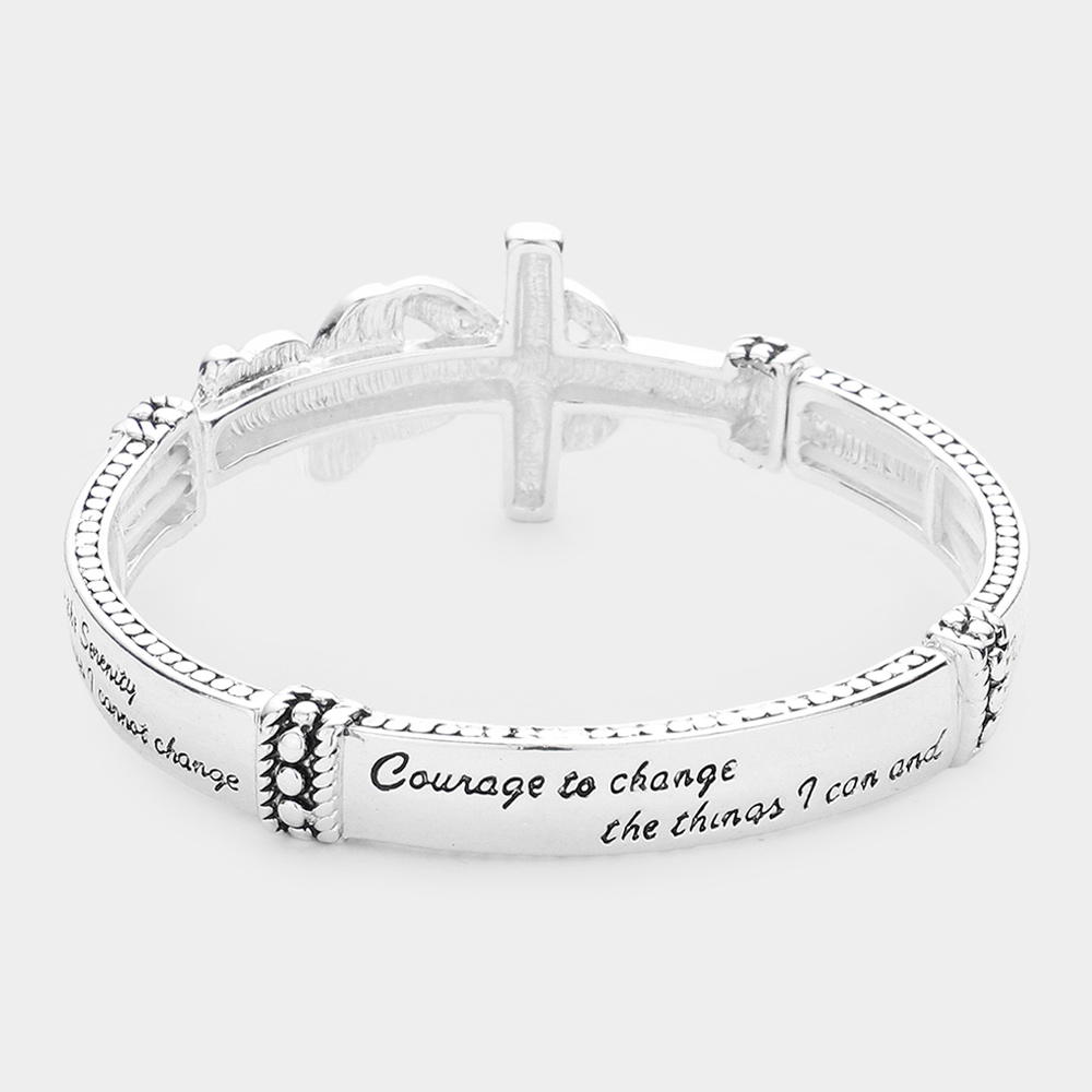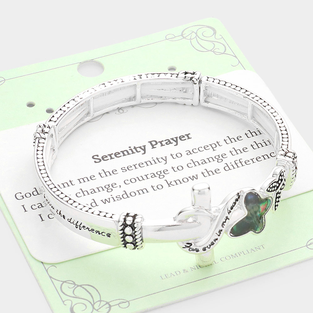 Serenity Prayer Message Butterfly Cross Metal Stretch Bracelet