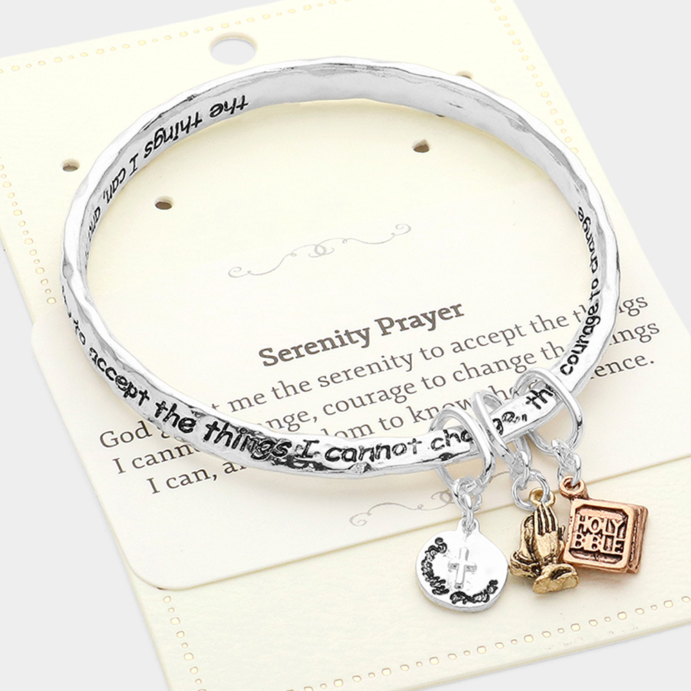 Serenity Prayer Message Religious Charm Metal Bangle Bracelet