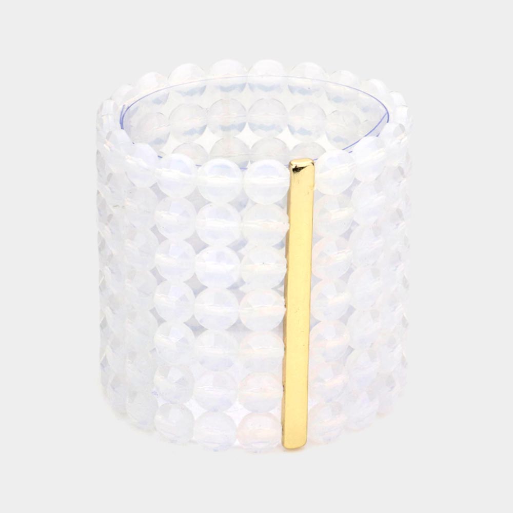 7Rows Wide Faceted Round Beaded Stretch Bracelet