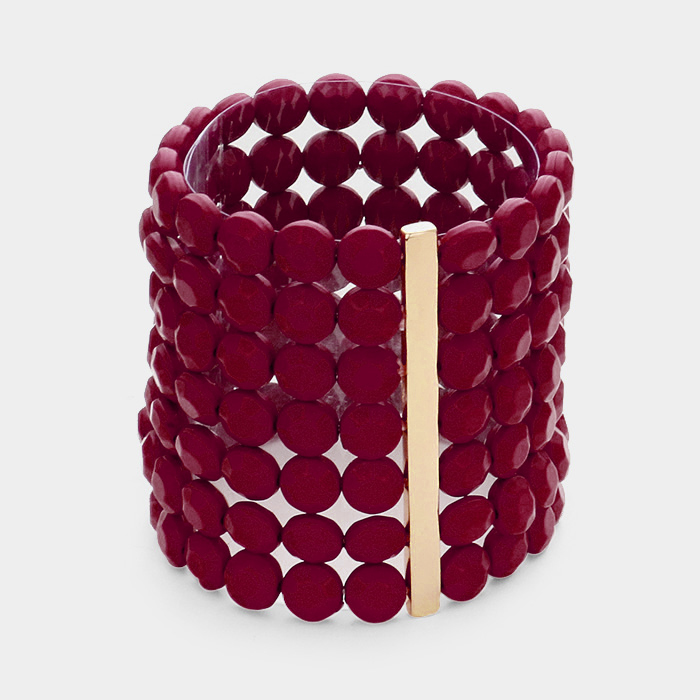 7Rows Wide Faceted Round Beaded Stretch Bracelet