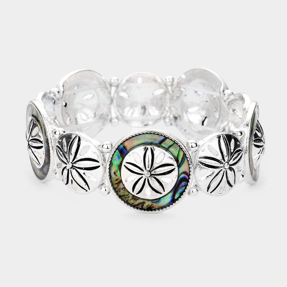 Abalone Pointed Metal Sand Dollar Stretch Bracelet
