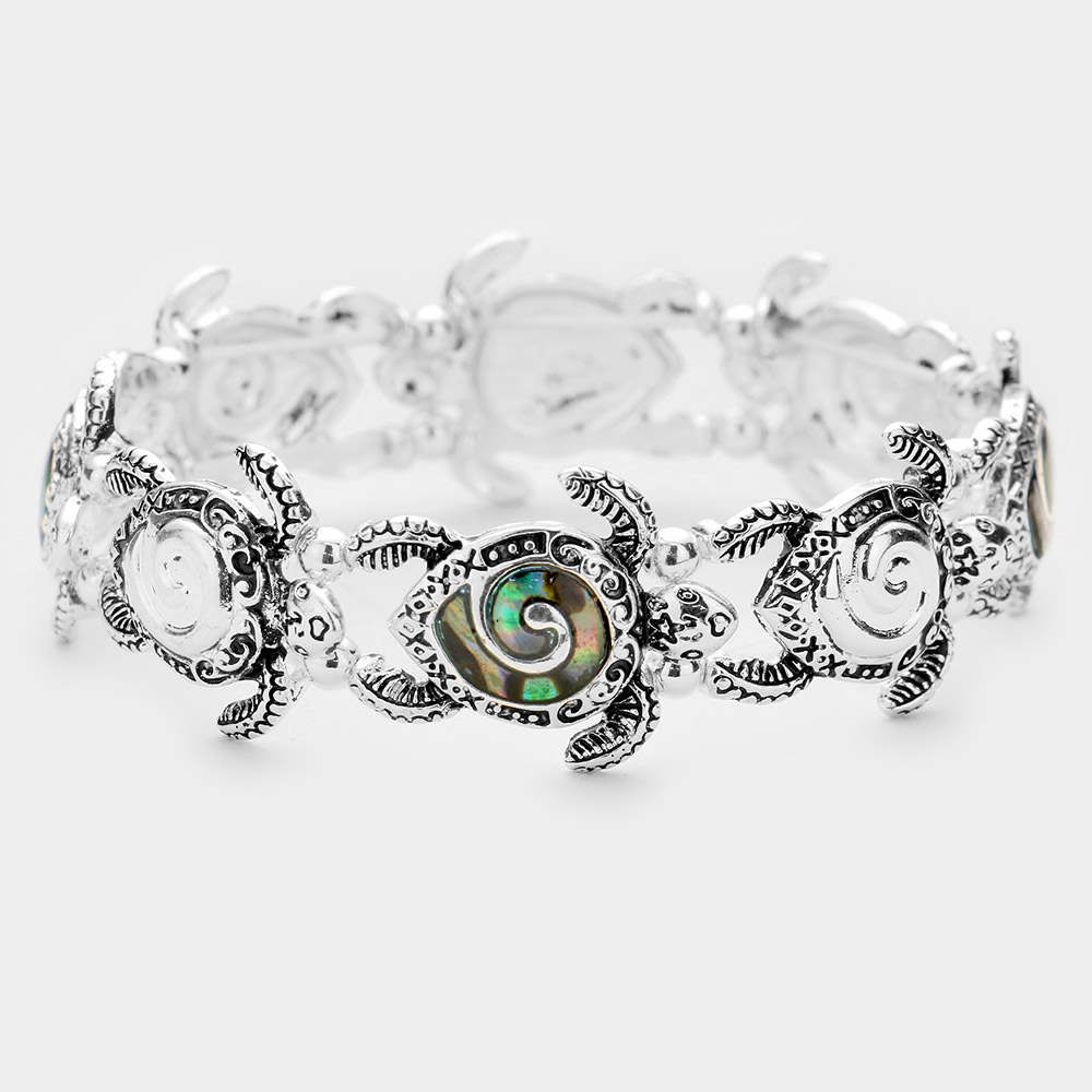Abalone Turtle Antique Metal Trim Stretch Bracelet