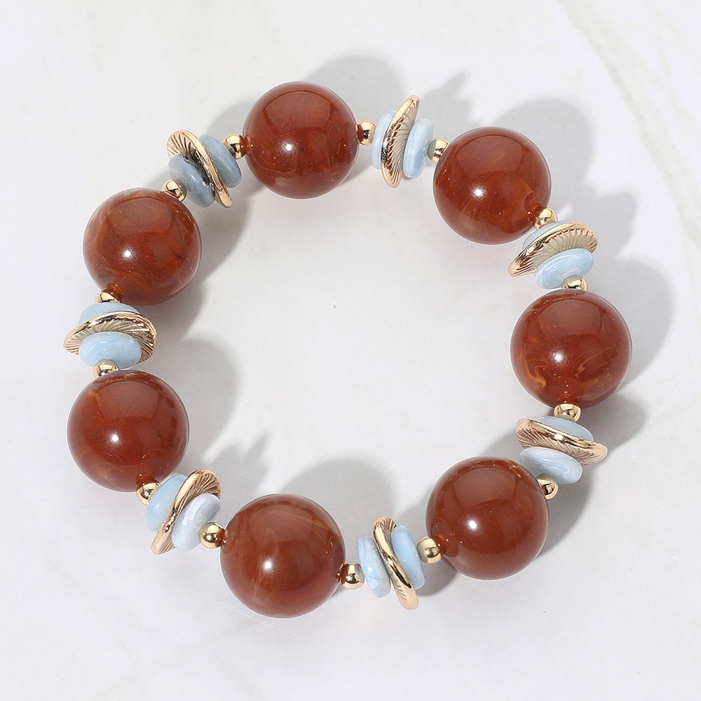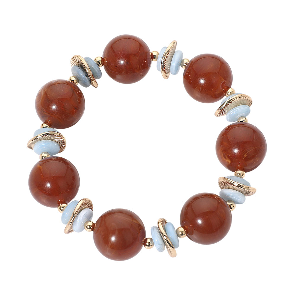 Abstract Marbled Resin Ball Beaded Stretch Bracelet