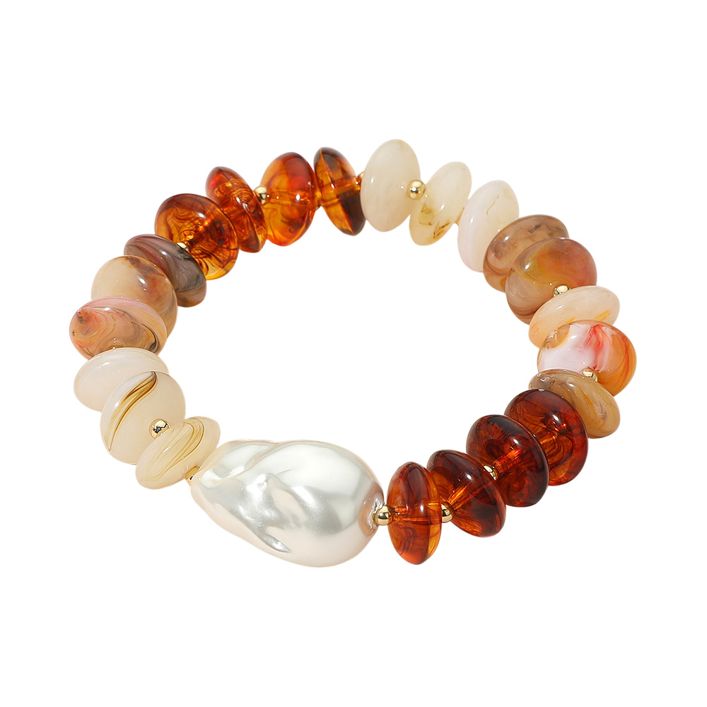 Abstract Pearl Accent Resin Pebble Beaded Stretch Bracelet
