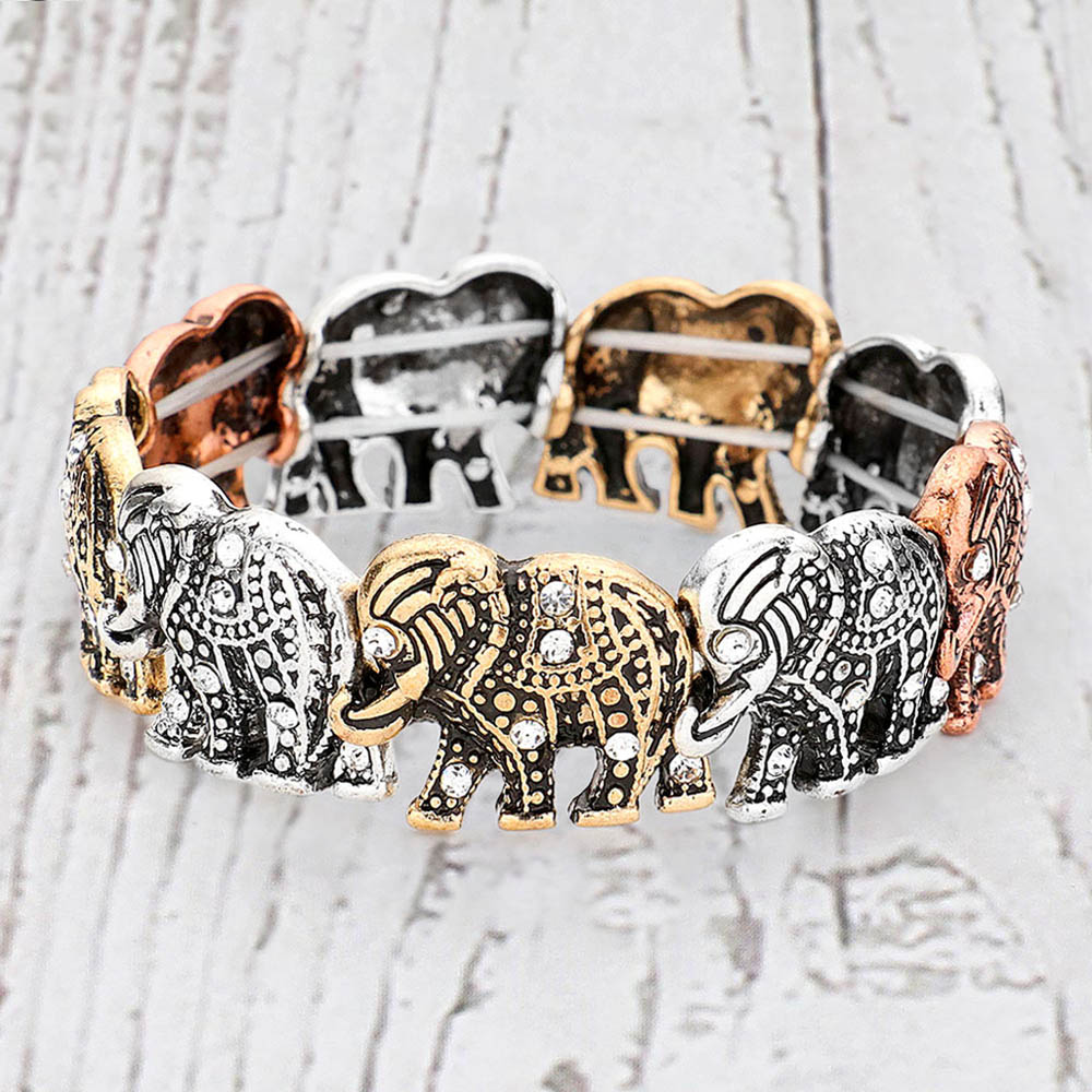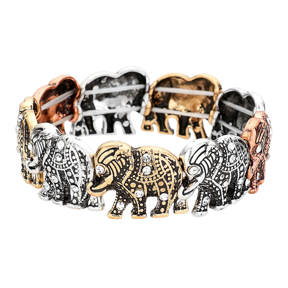 • Charming stretch bracelet featuring linked elephant motifs with engraved accents, symbolizing luck and strength. A unique accessory that adds personality and boho flair to any look, perfect for gifting or wearing as a meaningful everyday statement piece.